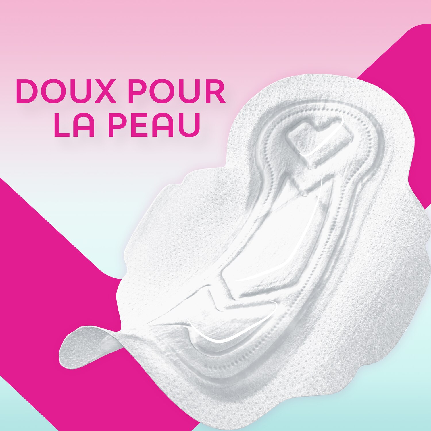 Notre protège-lingerie Nana PureSensitive™ Extra Long a été spécialement conçu pour les peaux sensibles. 4,2 cm plus longs que les réguiers et doux pour votre peau, ils contiennent 0% d'allergènes*. Sonvoile de surface est ultra-doux et soyeux, et minimise les sensations désagréables de frottements contre votre zone intime. Notre technologie adaptative Courb-V™️ vous offre un ajustement et une protection maximale. Ses 3 zones d’absorption intelligentes capturent et retiennent rapidement votre sang et vos pertes.